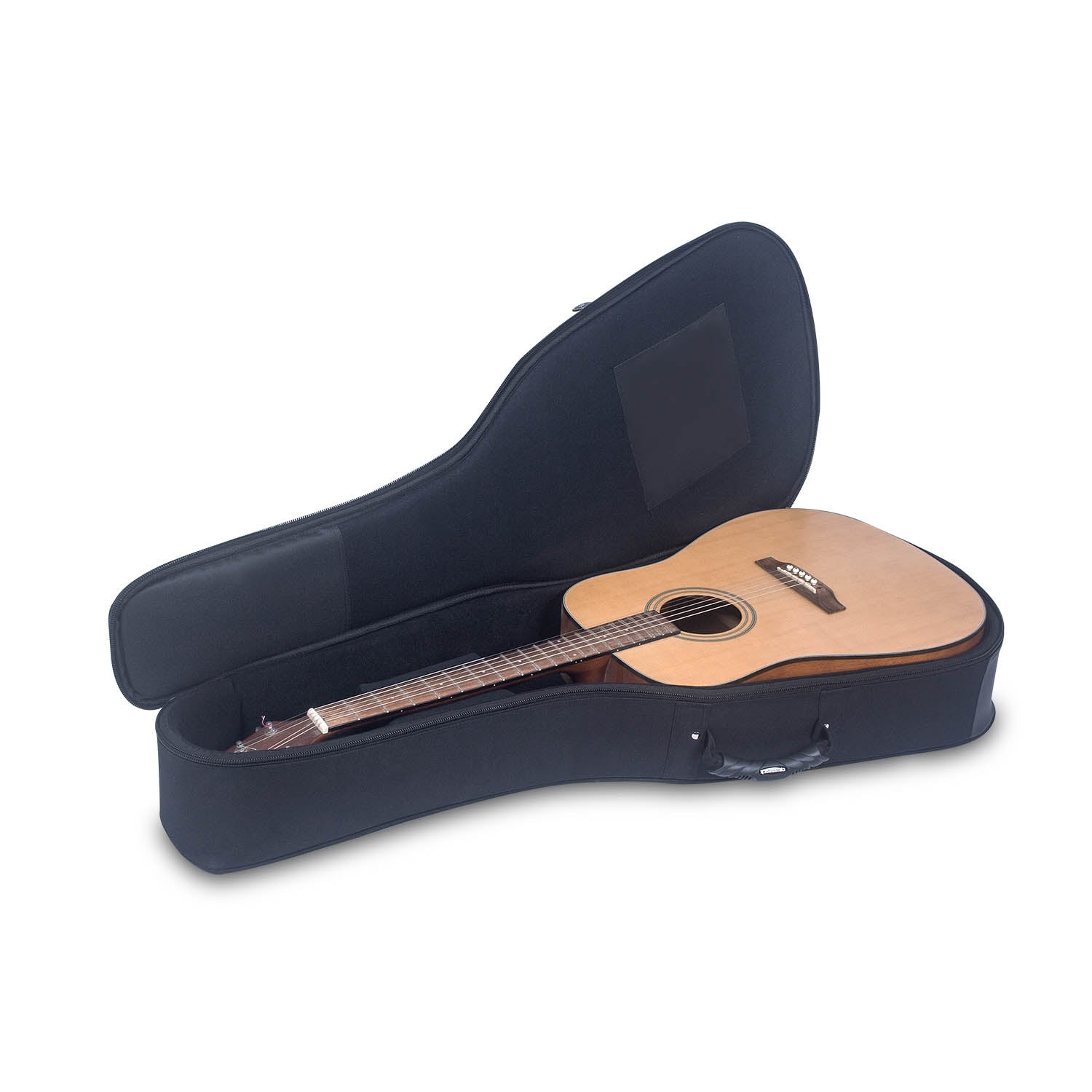 CROSSROCK CRDG105D the lightweight conveniences of an acoustic guitar gig bag with deluxe and sturdy case-like appointments in black, adjustable fully padded back straps, neck foam rest, generous front pockets